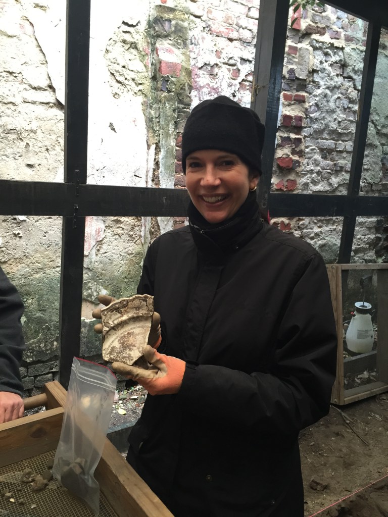 Many folks know Juliana Falk as the Accidental Preservationist, with an active social media account. But Juliana is also an avocational archaeologist, and regular volunteer in the archaeology lab at The Charleston Museum. Juliana became interested in archaeology during renovations of the Chancognie house in downtown Charleston, where she discovered 19th century artifacts glinting on the surface in the rear corner of the property. Consultation with local archaeologists led to a small exploratory dig by The Charleston Museum in the spring of 2016. From the very beginning, we worked with Juliana, not for Juliana. She jumped into the pit and was a quick learner, mastering field techniques and artifact identification in record time.